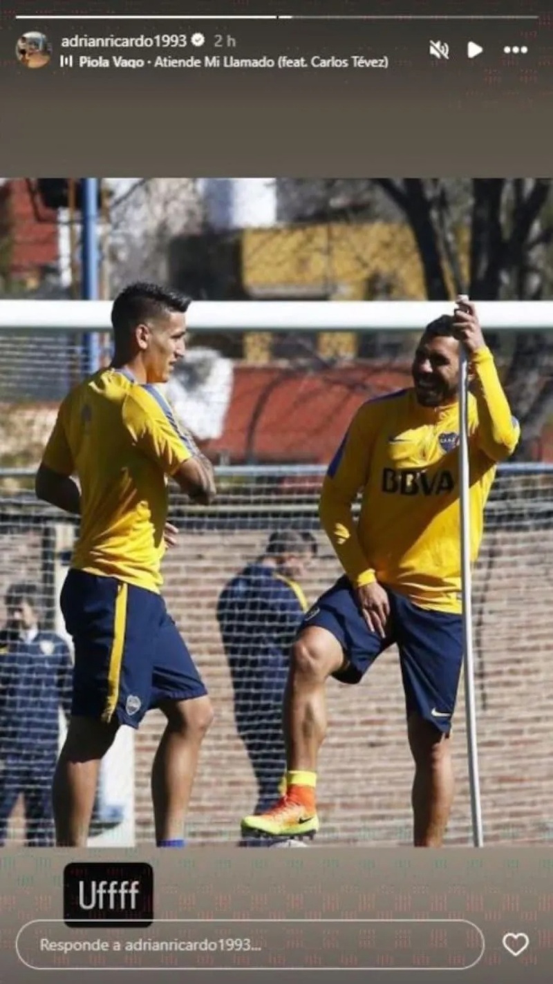 Es que el jugador de 32 años publicó una historia en su cuenta de Instagram donde subió una foto con Carlos Tevez en la época donde fueron compañeros en Boca, pero lo llamativo fue que subió esa imagen con la canción “Atiende mi llamado” de Piola Vago, la banda que fundó el Apache.