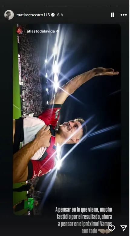 A través de su cuenta de Instagram, Matías Cóccaro dejó de lado su picante cruce con Lionel Messi y expresó su bronca por la derrota agónica de Atlas ante Inter Miami.