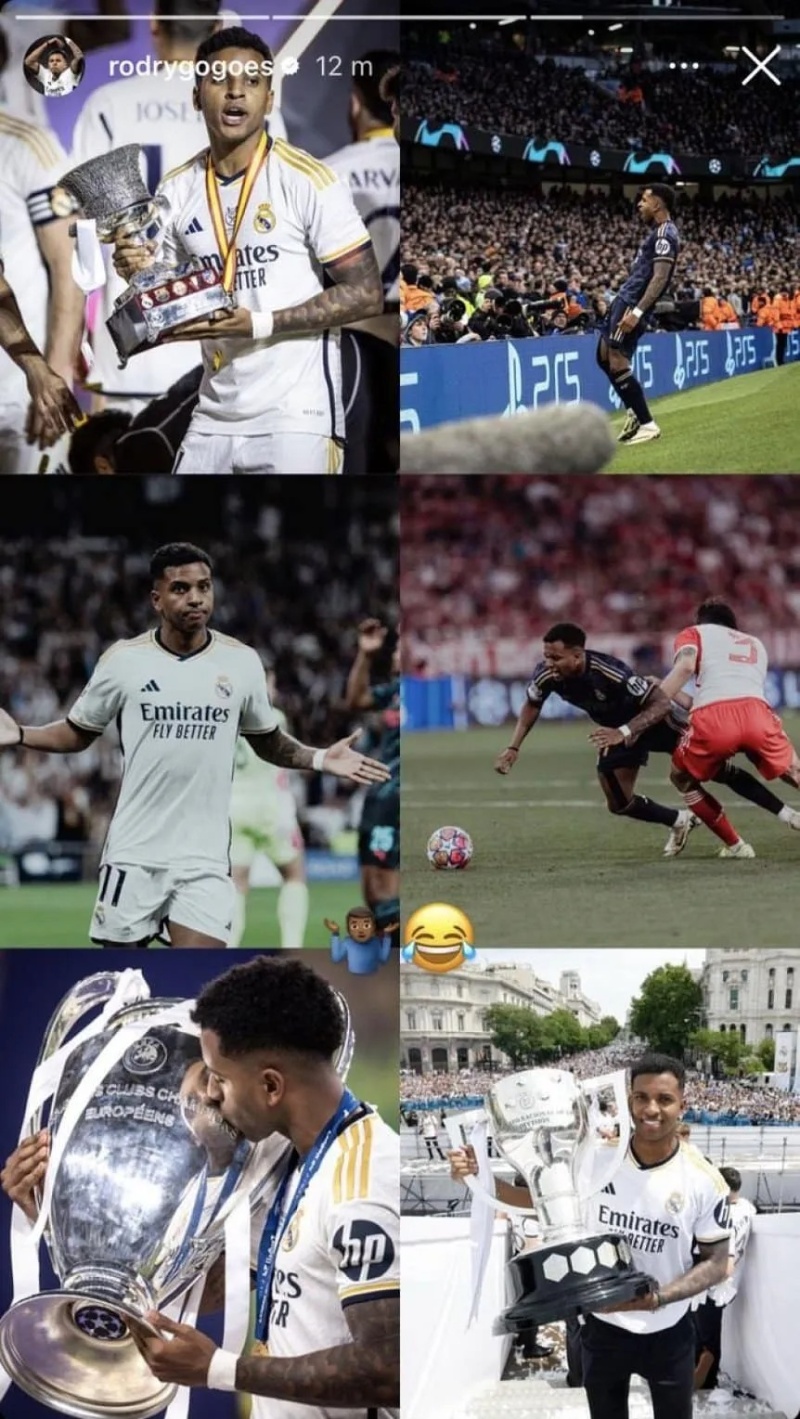 Luego de haberse publicado la lista de nominados para el Balón de Oro, Rodrygo realizó un fuerte posteo en su cuenta de Instagram, donde hizo un collage con los trofeos que ganó en el Real Madrid.
