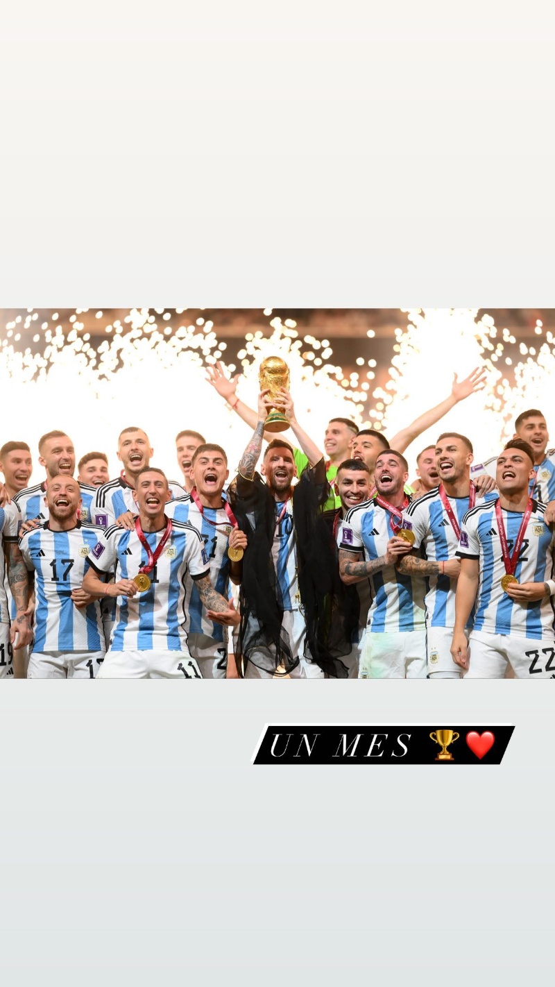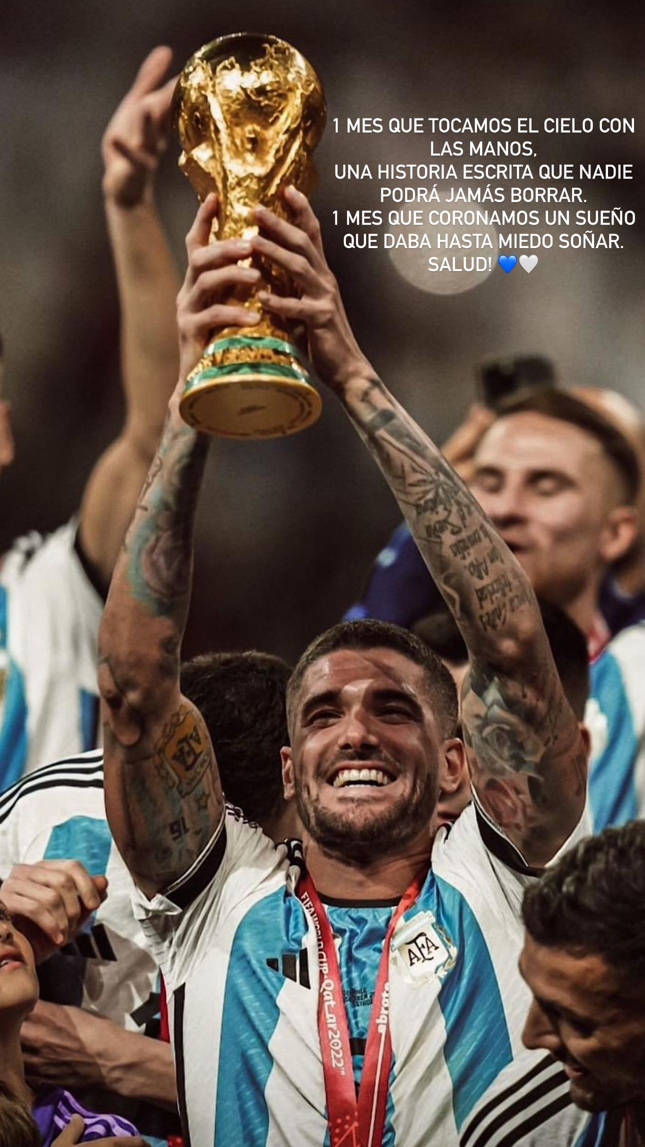 "1 mes que tocamos el cielo con las manos. Una historia escrita que nadie podrá jamás borrar. 1 mes que coronamos un sueño que daba hasta miedo soñar. Salud!", el mensaje de De Paul:
