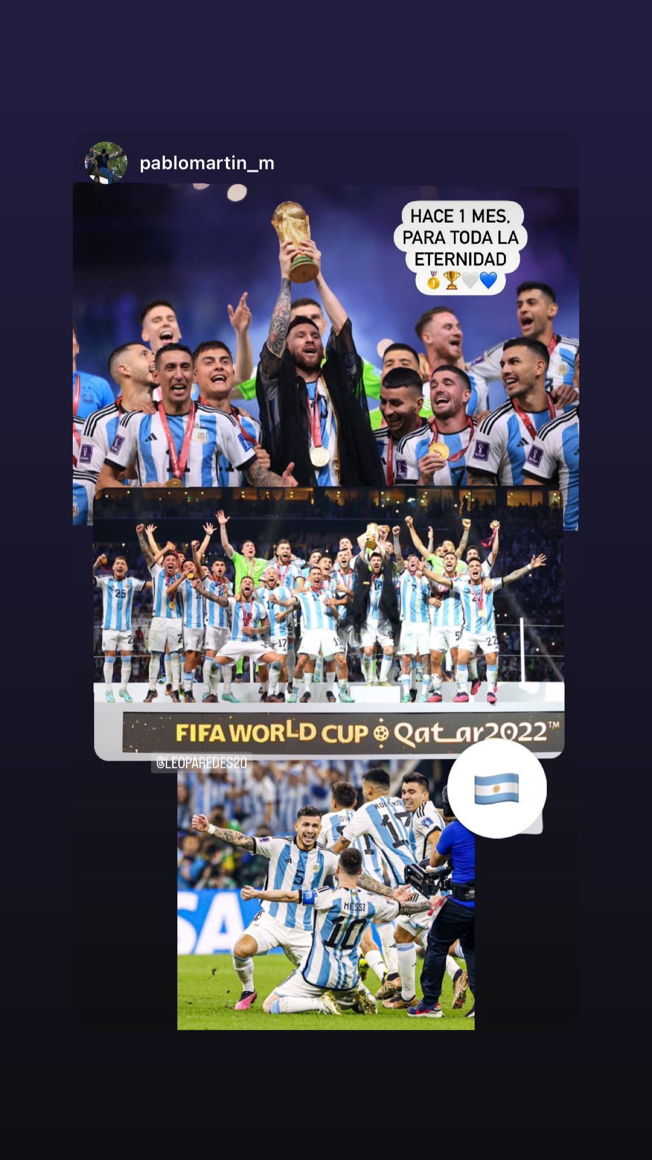 Pasadas las 00 del martes, algunos jugadores de la Selección comenzaron a recordar aquella tarde gloriosa en el Estadio Lusail: Rodrigo De Paul, Ángel Correa, Paulo Dybala, Alexis Mac Allister.